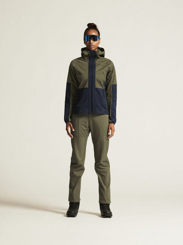 Gear up for your Nordic ski adventures with the Women's Craft Sportswear Core Backcountry Hood Jacket. This jacket is tailored from an elastic 3L Ventair fabric, providing superb wind and waterproof protection (8k/8k) essential for outdoor training in cold conditions. Featuring an adjustable hood to shield you from foul weather, two front pockets with zips to secure your essentials, and a reverse zip at the front for ease of use, it ensures you stay comfortable and functional. The comfortable jersey sleeve cuffs add an extra touch of coziness. This is your go-to gear for staying active in wintery landscapes.