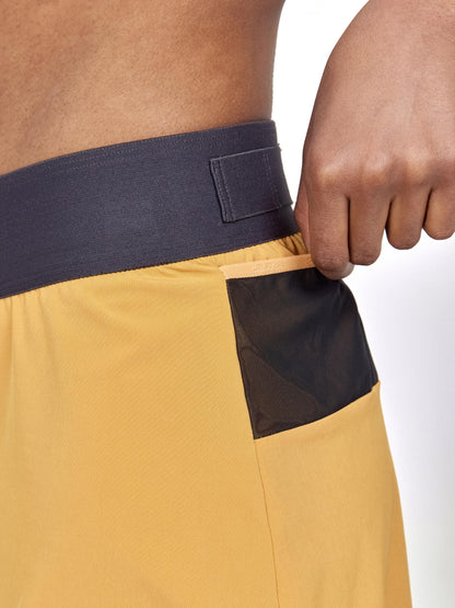 Pro-grade 2-in-1 trail running shorts made of sturdy, recycled 4-way stretch fabric. The shorts feature multiple carry all pockets.