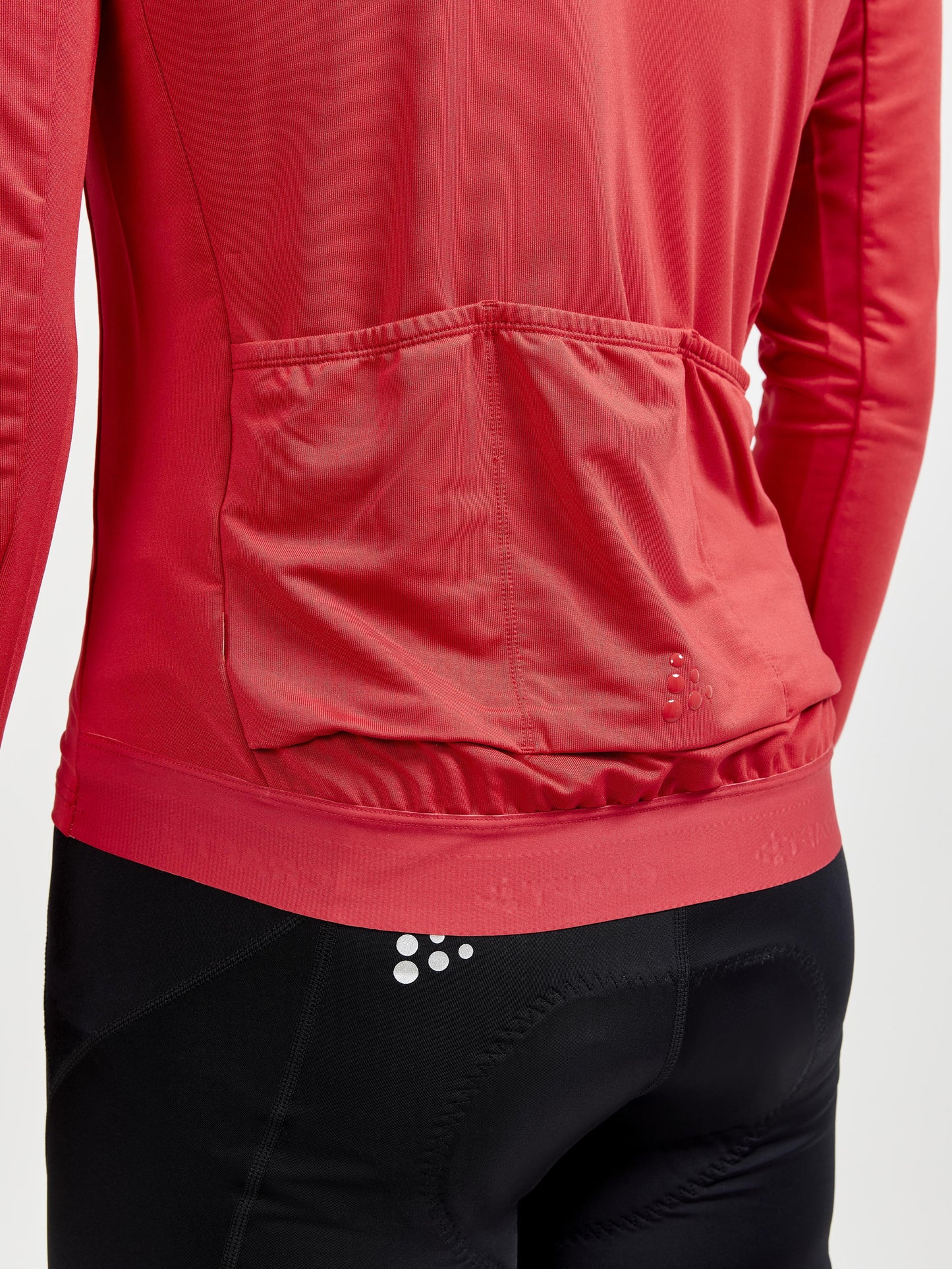 Our basic cycling jersey is anything but basic. Clean lines, technical details, and Craft's steadfast quality combine to make our Core Bike Essence LS jersey and essential piece of cycling gear. Utilizing an elastic fabric with a soft brushed inside for optimal comfort the jersey has four back pockets and silicone grippers at the back. Layer it or wear it alone but either way this will be a go-to piece of your everyday cycling gear.