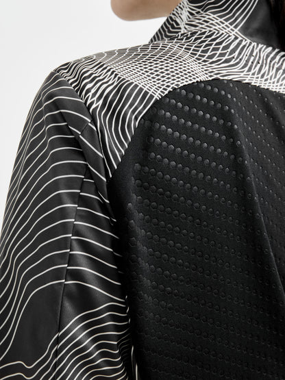 Pro Velocity Jacket is a pro-grade cross-country ski jacket designed for fast high-intensity workouts. The jacket features a 3-layer wind- and waterproof stretch fabric at front and sleeves as well as recycled functional jersey at back for enhanced ventilation and efficient moisture transport. In addition, perforations at sides and armpits provide added ventilation, keeping you cool even during tough workouts or competitions. All-out racing Pro Velocity is a technically advanced concept for the competitive cross-country skier. High-performance fabrics combine with perforated ventilation, glued seams, raw-cut edges and tight fit gives a professional feel and creates an all-out racing statement.