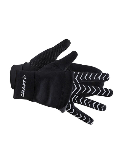 Luminous warm, hybrid gloves with tuck-away mitten and reflective print for enhanced visibility.