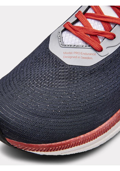 The PRO Endur Distance shoe brings a new level of responsiveness to serious runners. The Px Foam midsole is designed to optimum stack height for explosive toe off and feather soft landing to for efficient stride. Every contour of this platform was carefully considered to provide maximum energy and varying speeds. The fully engineered one-piece mesh upper works in unison with the foot to provide comfort and support with every nimble step. This shoe shines with vibrant performance and simplicity in design.