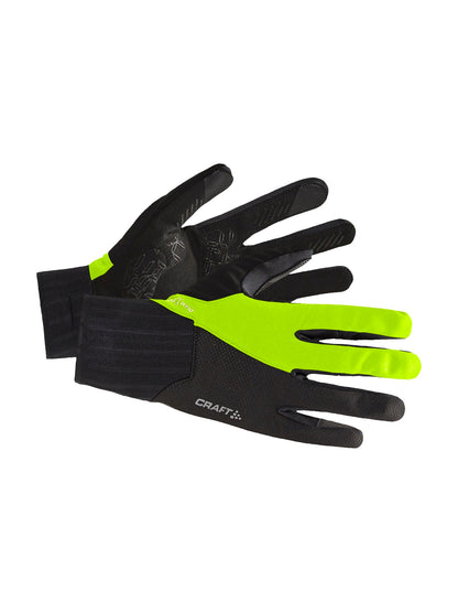 Warm, wind-/waterproof bike glove with fleece lining for optimal warmth. Soft, water-protective softshell fabric and silicone print inside palm for enhanced grip. Velcro adjuster.