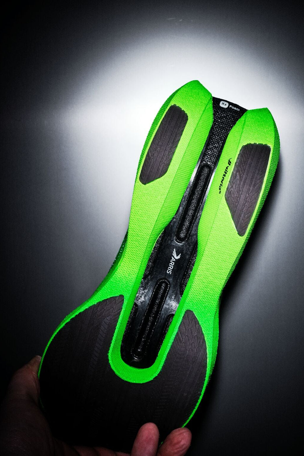 Made in collaboration with Arris, the Kype Pro features an advanced carbon fiber plate tailored for marathon supershoes. Weighing just 14 grams, it offers 30% weight savings. With a split heel design and enhanced stiffness, it improves energy return, stability, and propulsion for top performance.