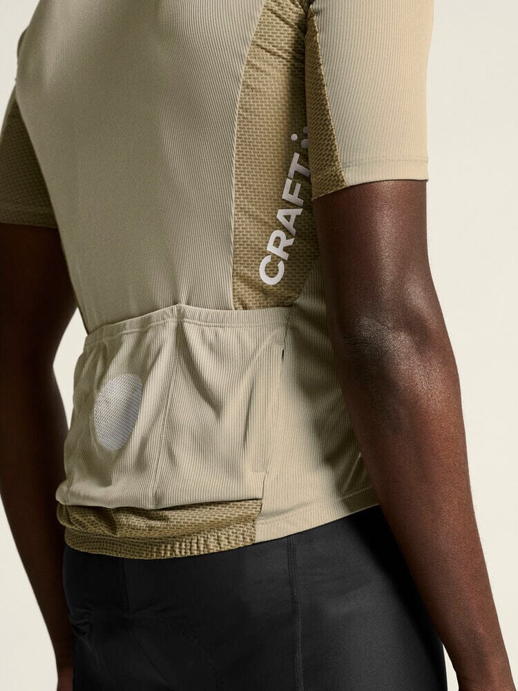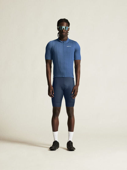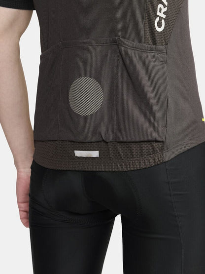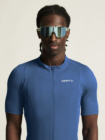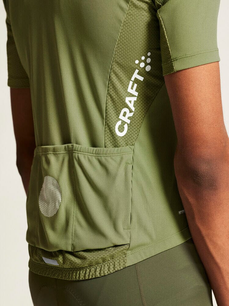 Introducing the Craft Sportswear Men's ADV Endur Jersey – the go-to gear for avid cyclists. Its functional rib fabric is not only soft and stretchy but is known for its excellent moisture transportation abilities during high-intensity rides. For extra breathability, we've included bodymapped mesh panels at the upper back, inside sleeves, and side panel. Four back pockets are readily available for all your belongings, with one of them being a zip-pocket for safe storage. Moreover, the jersey's silicon printed elastic at the back bottom hem ensures the jersey stays right in place, providing a hassle-free riding experience. Ride the miles with ultimate comfort.
