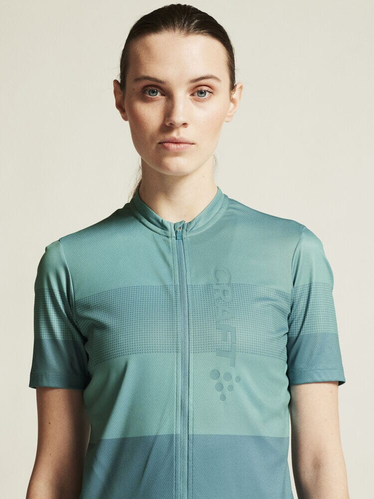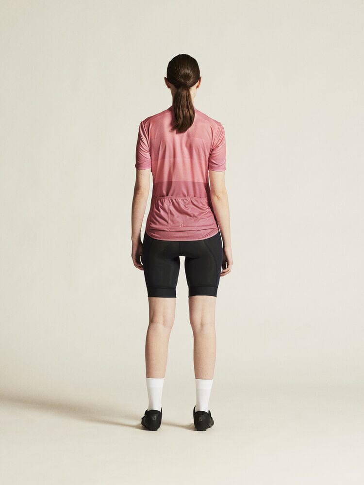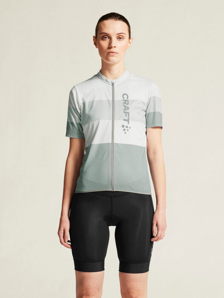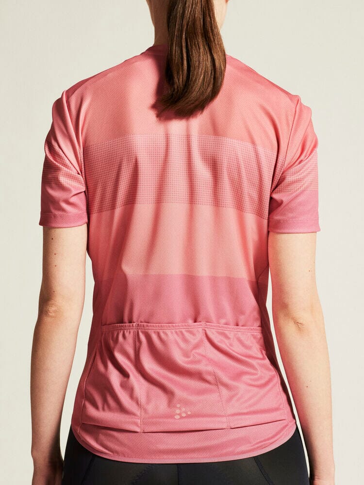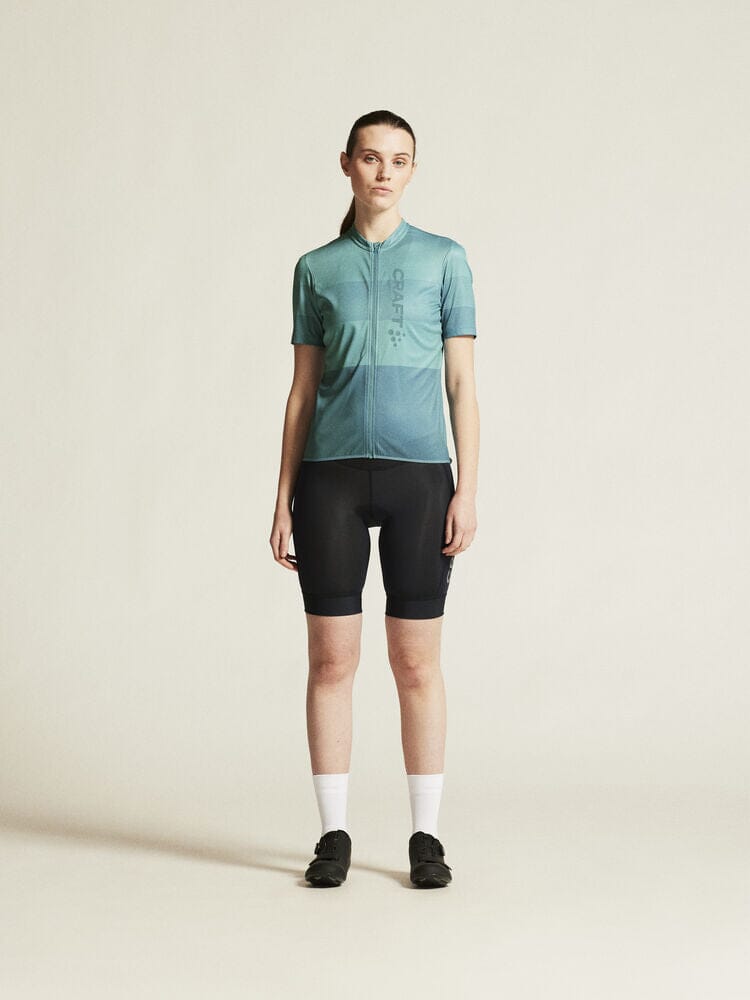 Embark on your cycling journeys in comfort and style with the Women's Craft Sportswear Core Endure Logo Jersey. Engineered with stretchy and functional fabric, it offers an unmatched level of moisture control for sweat-free rides. Three spacious back pockets and a full-front zipper enhance your convenience on the go. This jersey boasts a secure fit thanks to its unique double-edge band at the back bottom hem. Ride on with unparalleled comfort in this dynamic bike jersey.