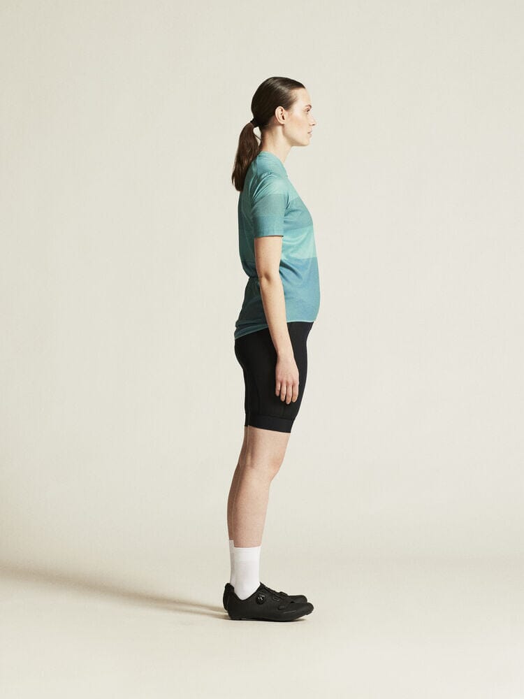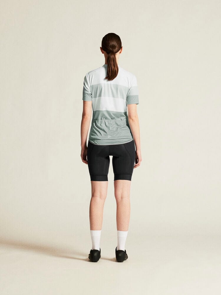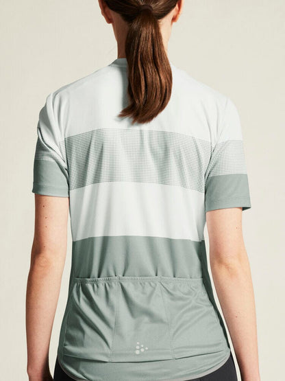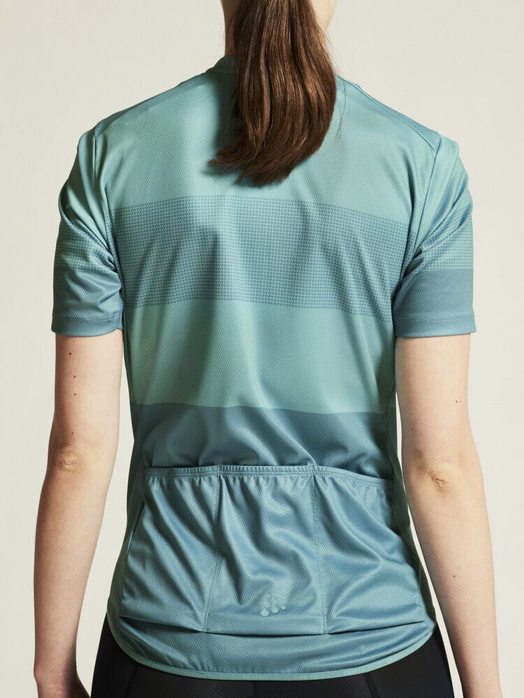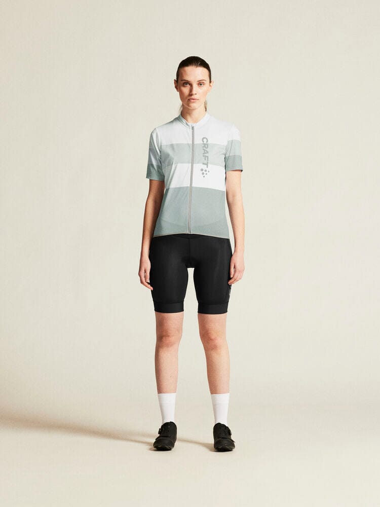 Embark on your cycling journeys in comfort and style with the Women's Craft Sportswear Core Endure Logo Jersey. Engineered with stretchy and functional fabric, it offers an unmatched level of moisture control for sweat-free rides. Three spacious back pockets and a full-front zipper enhance your convenience on the go. This jersey boasts a secure fit thanks to its unique double-edge band at the back bottom hem. Ride on with unparalleled comfort in this dynamic bike jersey.